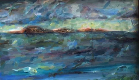 VELKOMMEN TIL UTSTILLINGEN som tar deg med på en reise både over og under overflaten fra Indre Oslofjord og ut mot havgapet. Soloutstillingen viser særegne opplevelser av lys og farger i malerier fra kjente steder som SJØHOLMEN og SANDVIKA til ukjente steder på fjordens bunn. Bli med i et plutselig glimt, en stillstand der du kan oppleve å bli ett med landskap og undervannskap.